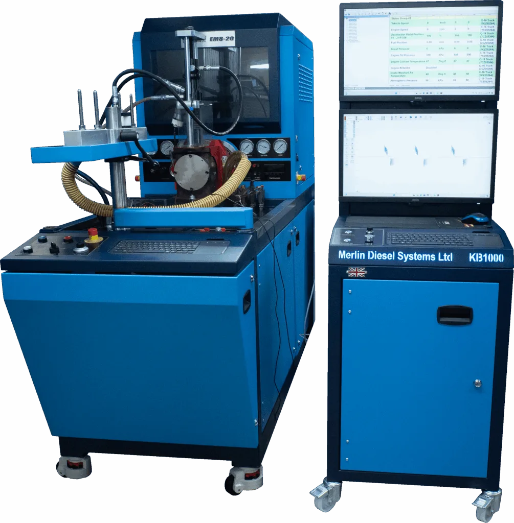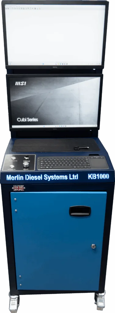 KB1000 от Merlin Diesel Systems е съвременна, самостоятелна система за програмиране, специално разработена за работилници, които използват традиционни дизелови стендове за тестване и системи за всички марки. Този интерфейс осигурява прецизно програмиране и тестване на всички модели инжектори на Caterpillar, включително CAT 3500 и C Series.