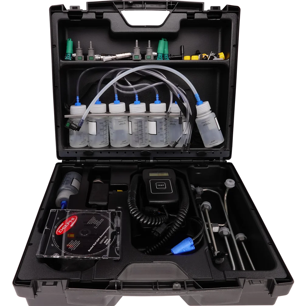 Този комплект от Delphi, съдържащ запечатан горивен инжектиран, задава стандартите за хидро-механична диагностика и осигурява лесен и икономичен метод за тестване на всички марки горивни инжектирани помпи и инжектори с общ горивен инжектиран.