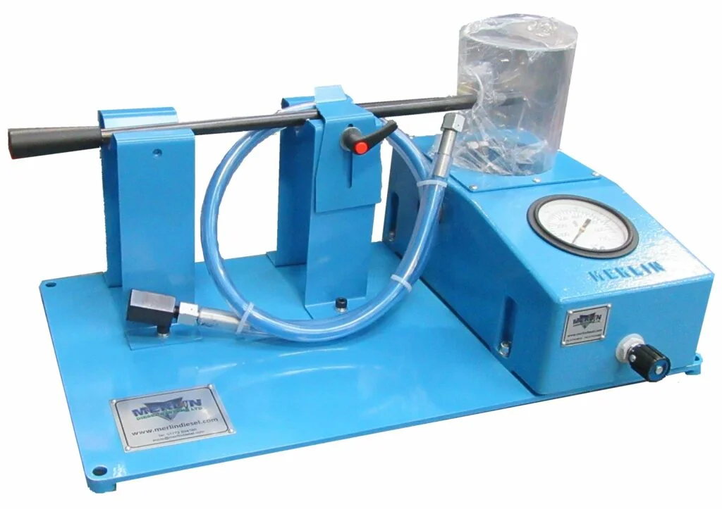 Merlin S31M е преносим ръчен инжектор тестер, работещ с ръкохват, с максимално налягане 700 бара. Използва се за тестване и регулиране на конвенционални морски инжектори. Проектиран и разработен с следните функции: – Налягане на отваряне – Тест за вибрации (аерозолизация) – Форма на пръскане – Протичане в седалката – Протичане отзад – Вграден прозрачен контейнер за улавяне на пръскането осигурява непрекъсната циркулация на тестващото масло с минимална загуба към атмосферата. – Помпа, проектирана за безпроблемна работа чрез включване на елемент от тип горивна помпа, съдържащ се в сменяема касета. – Усъвършенстван вал/бушинг и поддържащи елементи за монтаж на по-големи морски инжектори. – Произход на помпата: 1600/1800 куб. см на ход. – Обемът, уловен от устройството, е ограничен от конструкцията, за да отговаря на изискванията на производителите на инжектори за предотвратяване на протичане отзад. – Лека алуминиева конструкция, отлита от умира, с премахващ се ръкохват.